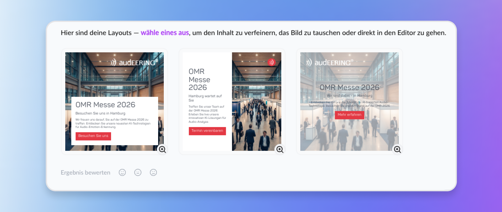 ✨ Mehrere Layout-Vorschläge: Statt einem Ergebnis siehst du verschiedene Varianten zur Auswahl