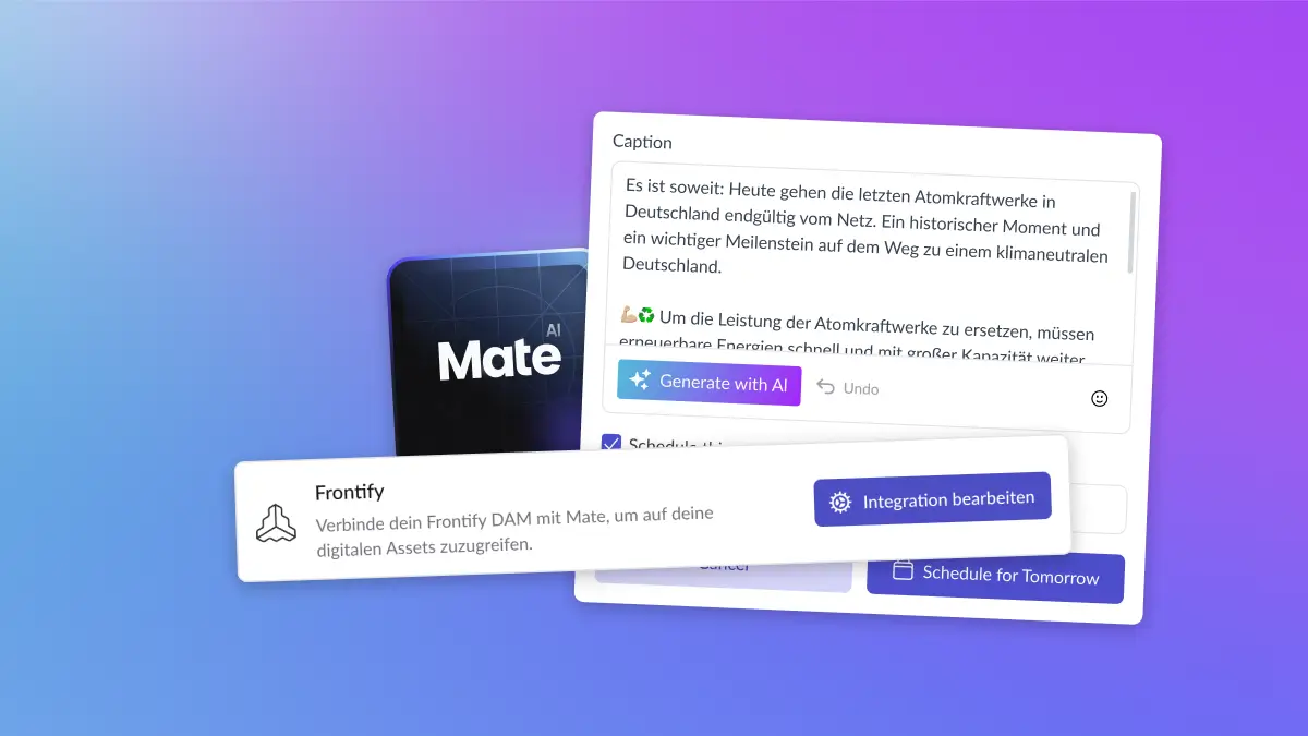 - Du möchtest den Text für die Caption auf Linkedin, Instagram & Co. schon vorformulieren? Dies kannst du nun einfach und schnell in Mate.