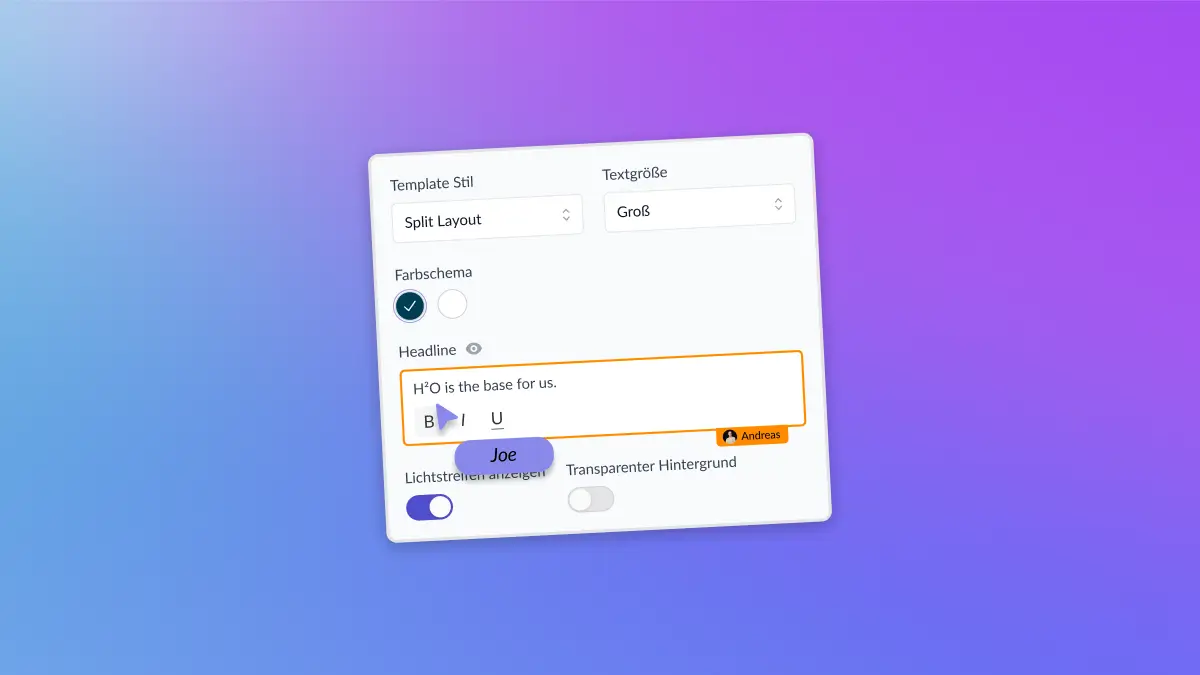 Mate garantiert dir und deinem Team Brand-Compliance in der visuellen Kommunikation. Kollaboratives Arbeiten im Team ist hierbei ein wichtiger Bestandteil, um noch effizienter zusammenzuarbeiten.